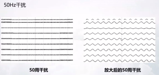 50Hz的干扰产生的波形有周期,特别规律。