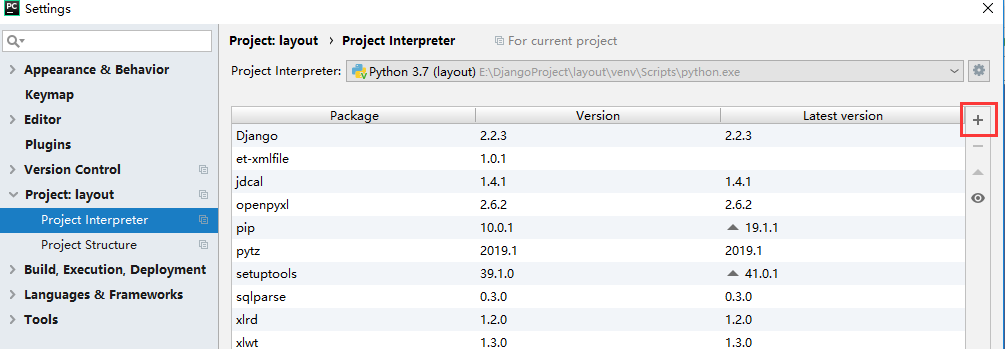 使用之前需要先安装,windows上如果直接在cmd中运行python则需要先执行pip3 install xlrd和pip3 install xlwt,如果使用pycharm则需要在项目的解释器中安装这两个模块,File-Settings-Project:layout-Project Interpreter,点击右侧界面的+号,然后搜索xlrd和xlwt,然后点击Install Package进行安装。