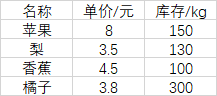 sheet.write(i+1,0,fruit[i]) #插入第一列水果名称