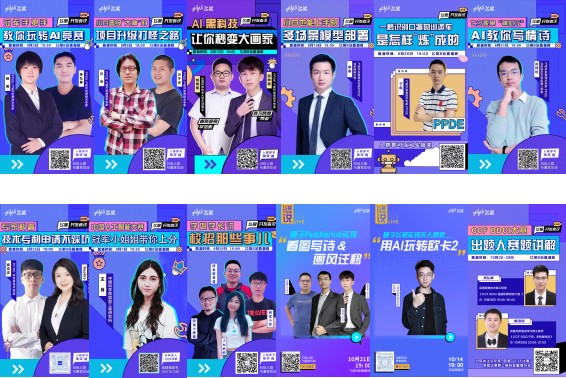 每周三晚上 19:00-20:00,都有一位PPDE(PaddlePaddle Developers Experts)在B站与大家见面交流。错过了往期直播的小伙伴,可以到B站搜索飞桨PaddlePaddle回顾之前的直播哟。