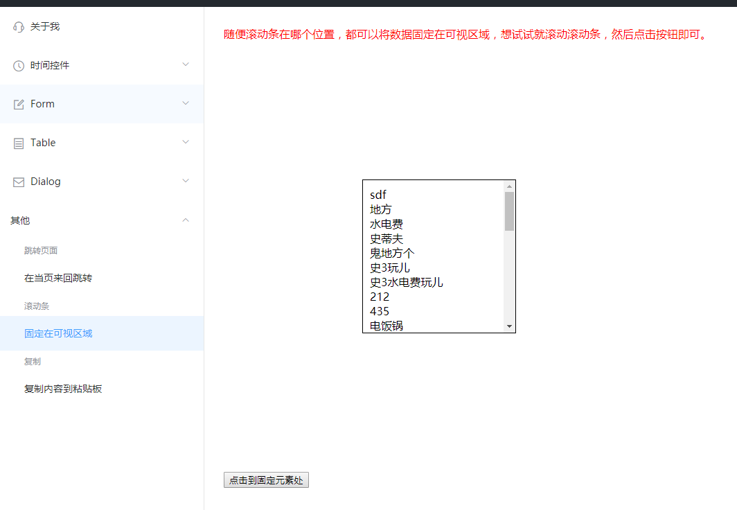 3、滚动条固定在可视区域