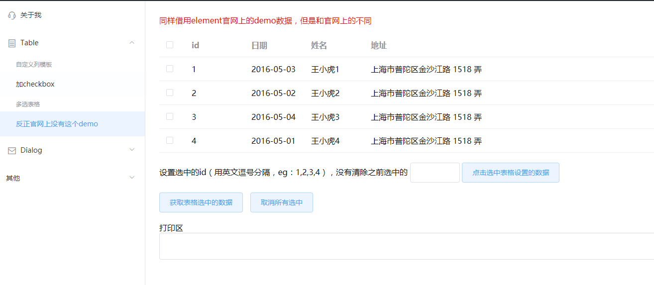 2、同样借用element官网上的demo数据,但是和官网上的不同