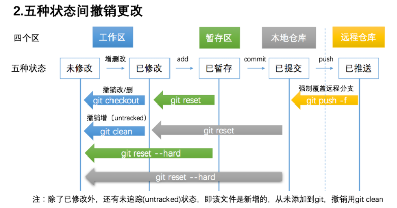 $ git clean -df # untracked状态,撤销新增的文件和文件夹