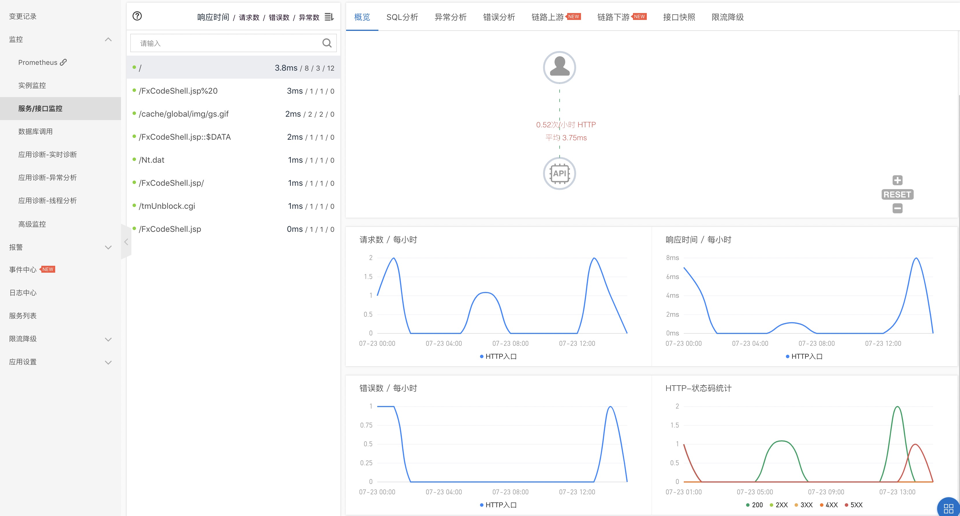 通过上图,我们可以直观的看到,当我们发布后应用的接口请求是否正常,以此来判断是否会对业务产生影响。