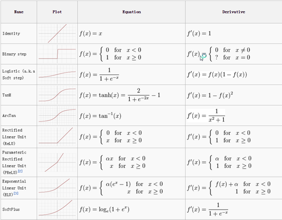 在CNN中,激活函数和其他网络一样,函数将数值压缩在一个范围内。下面列出了一些常见的函数: