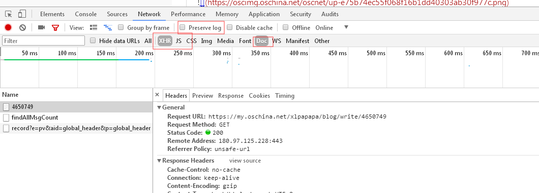 查看页面发出的请求和返回值,以及每个请求的耗时