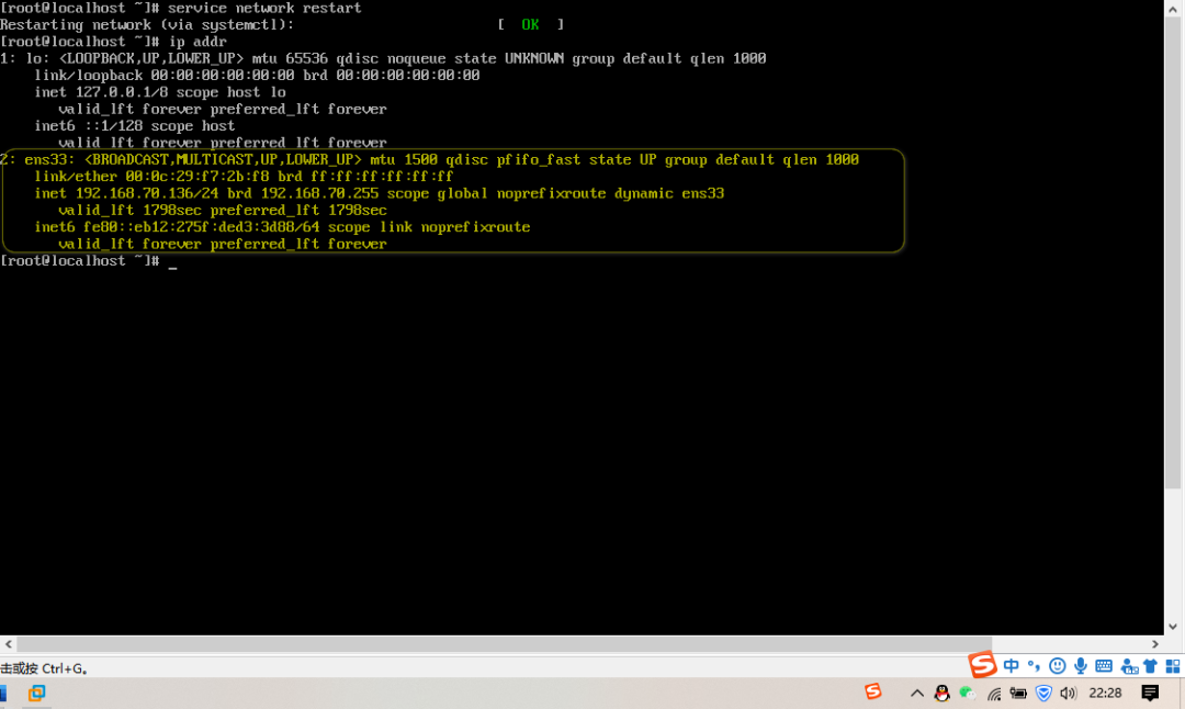 vi /etc/sysconfig/network-scripts/ifcfg-ens33