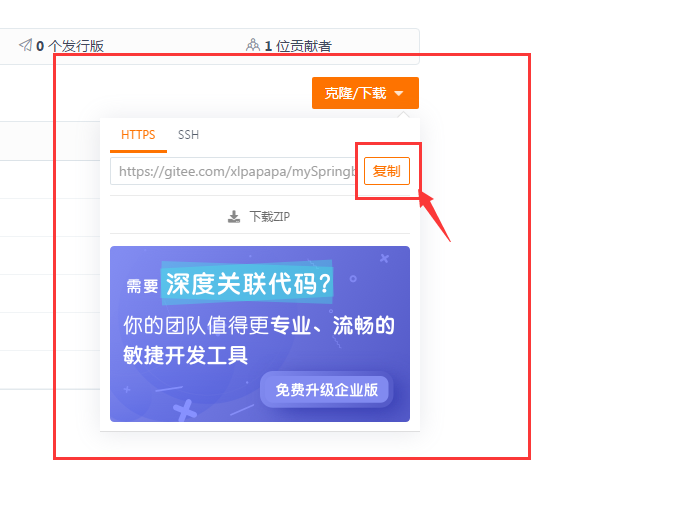 7、改成用https的方式 就ok了 讲道理 ssh方式应该也是可行的,然后再push一次就成功了,晓得了,我用idea生成了ssh公匙,却没有 在码云上设置,导致信息不对称连不上。