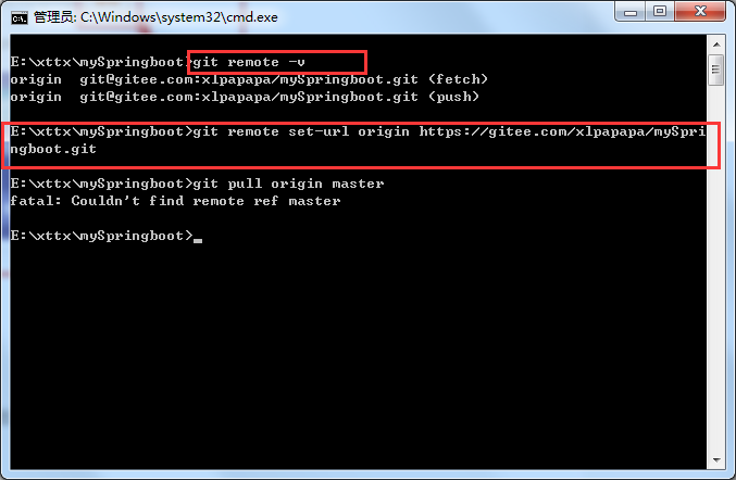6、关掉ssh,然后到项目的文件中 按住shift 再按 鼠标右键 点击在此运行命令行,查看自己的git地址,是ssh的,给他改成https的地址。