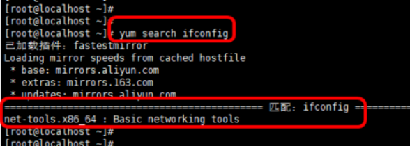 查看ifconfig匹配的是net-tools.x86_64包,安装net-tools.x86_64包