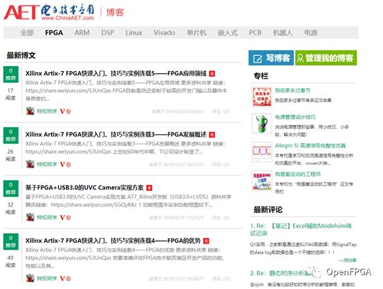 电子技术应用期刊的网站,准确地讲它不算一个论坛,里面有一个不错的FPGA博客版块,有比较多的FPGA相关文章,大部分文章是有干货的,当然也有一些夹杂不少的培训班的广告。