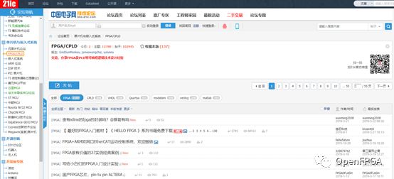 这个论坛主要是偏向IC设计的,由于FPGA在IC设计中往往属于前端设计,因此其前端设计板块有一些FPGA的相关讨论,里面有一些非常不错的分享,但是论坛这两年活跃度有点低。