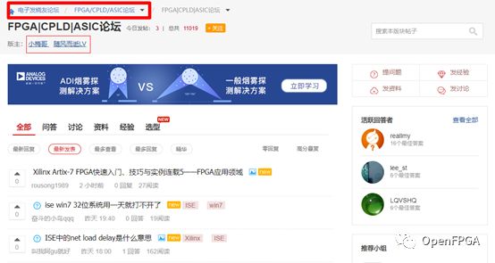 elecfans论坛的FPGA模块还是比较活跃的,有各种FPGA工具使用问题的一些讨论。