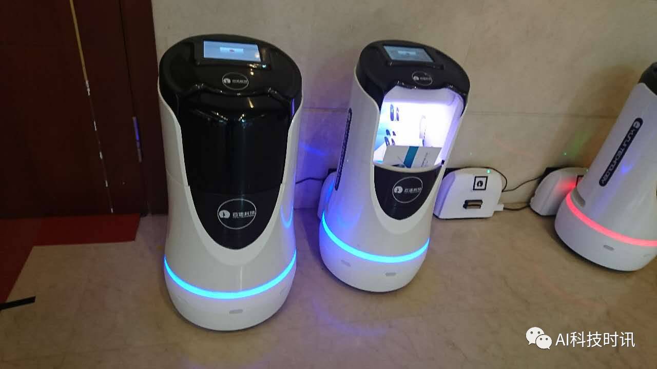 角落里有来自云迹科技的服务机器人,很可爱,已经应用全国100多家酒店。
