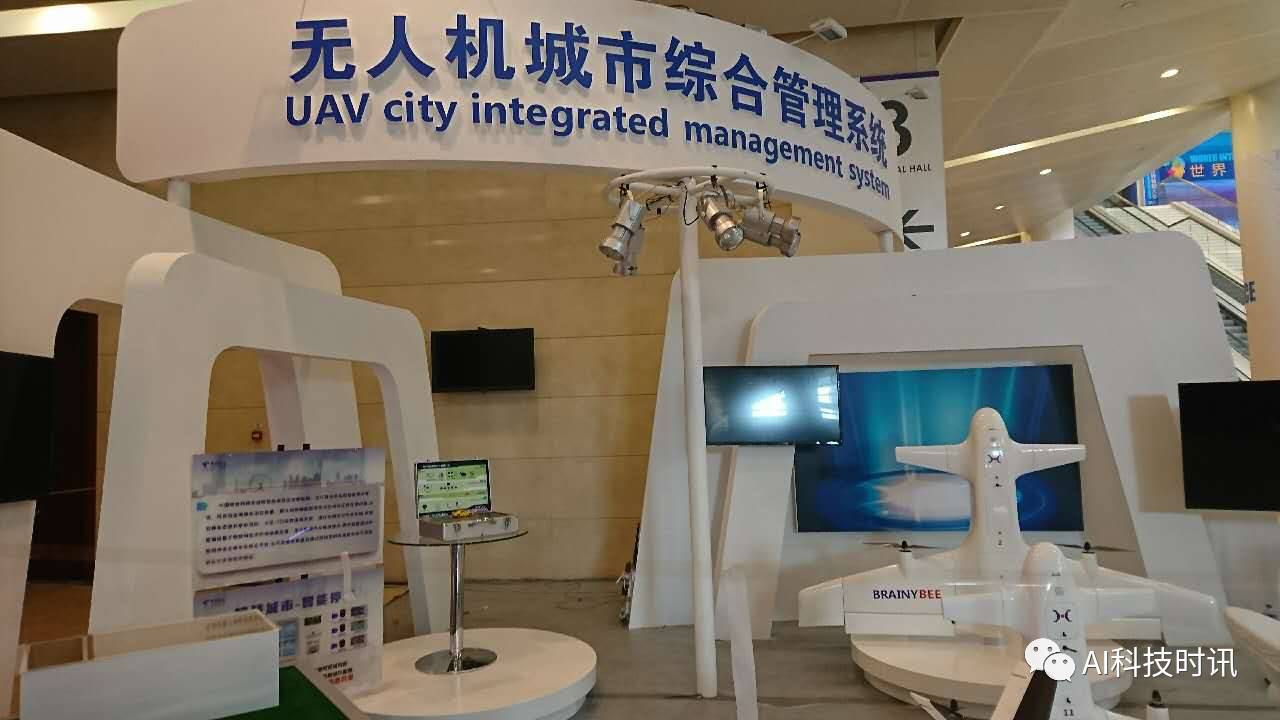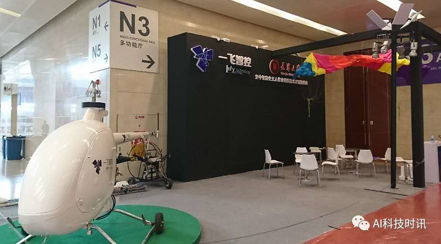 拐角处是天津大学参展的无人机,一飞智控。