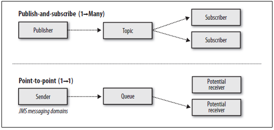 点对点模型通常是一个基于拉取或者轮询的消息传送模型,这种模型从队列中请求信息,而不是将消息推送到客户端。这个模型的特点是发送到队列的消息被一个且只有一个接收者接收处理,即使有多个消息监听者也是如此。