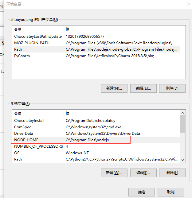 变量名:NODE_HOME