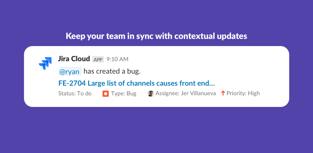 现在,Atlassian 云产品已成为完美地解决了这些问题,而无需强迫员工更改工作流程。因为 Slack 与 Atlassian 产品无缝集成,所以员工仍然可以向 Slack 发布消息或直接通过 Jira Service Desk 提交请求。无论哪种方式,都可以在 JiraSoftware 中与 Jira for Slack 集成自动创建故障单,IT 可以在其中分配和处理请求,通过注释与其他团队成员讨论问题,跟踪任务直至完成,并将结果报告给领导。员工可以通过 Slack 来追踪问题状态的更新,分配到任务的员工,以及任务优先级等方面的最新信息。这节省了IT团队的时间,因为他们不再需要回答状态问题,并且使员工专注于自己的核心职责,而不必担心自己的IT请求被遗忘。