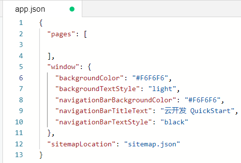 此时编译下方控制台会报“VM8100:5 appJSON["pages"] 需至少存在一项”错误,因为app.json中未配置任何页面路径,下面我们来对app.json进行配置。