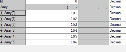 OperateResult write = allenBradleyNet.Write( "Array", new short[] { 101, 102, 103, 104, 105, 106 } );结果如下: