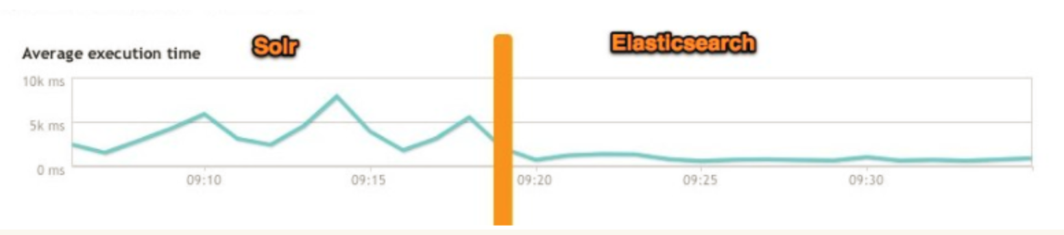 转变我们的搜索基础设施后从Solr ElasticSearch,我们看见一个即时 ~ 50X 提高搜索性能!