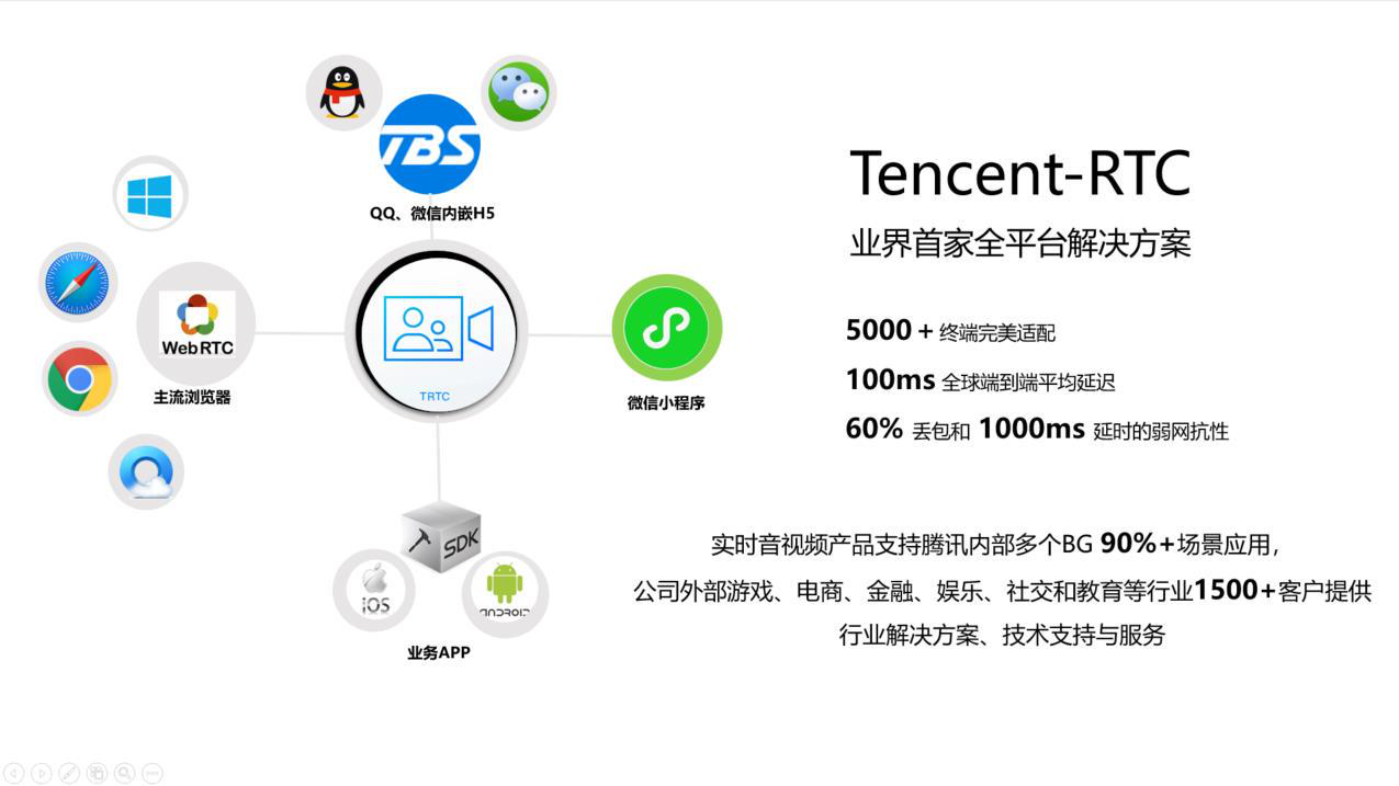 在疫情期间,TRTC 也为抗击疫情做出了力所能及的贡献:对内支撑了腾讯会议和腾讯课堂的服务扩容、企业微信的家校项目,以及腾讯音乐的海外版K歌业务,以及微信视频号和微信群内的直播业务。