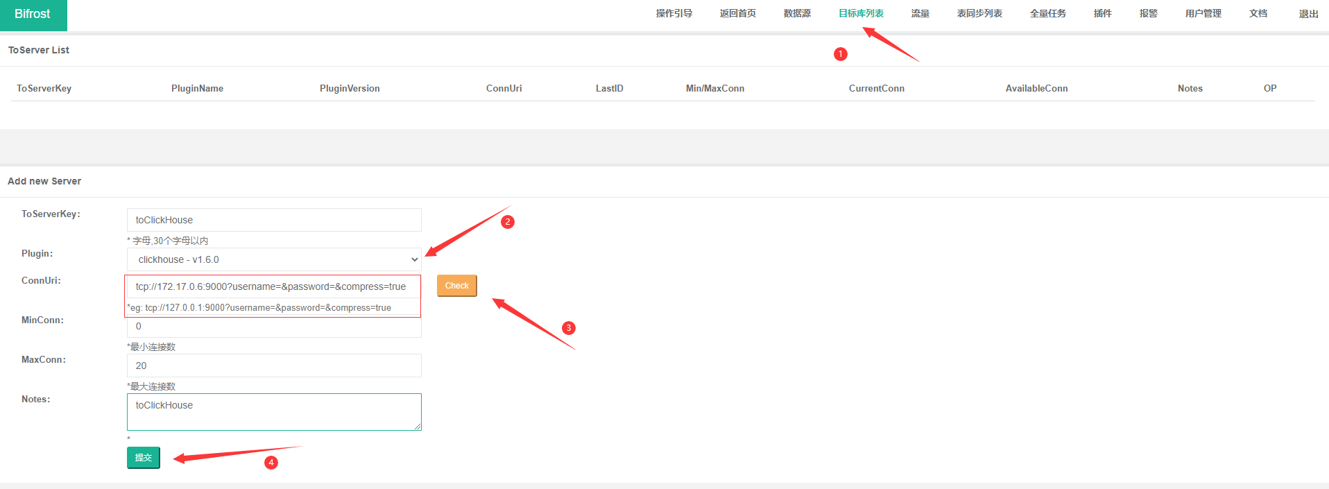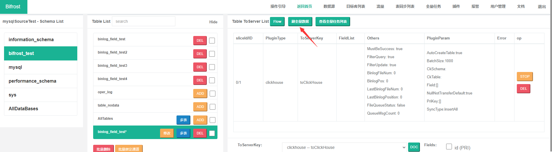 Bifrost 支持界面上点点点进行配置将MySQL 里的数据 同步到 ClickHouse