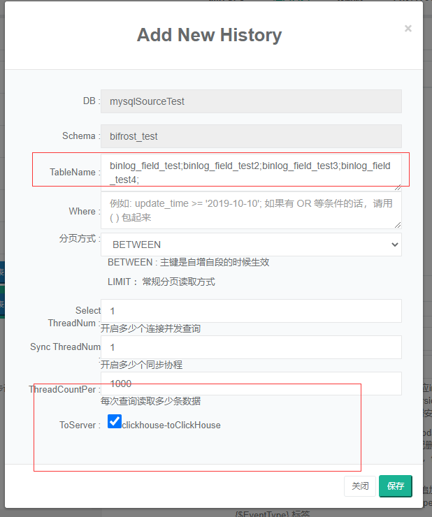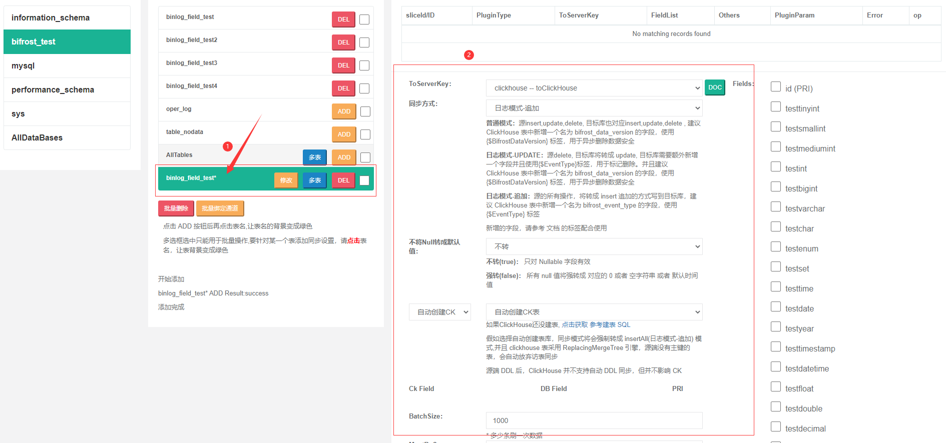 我们这里的需求是将 binlog_field_test 前缀的所有表的数据 ,同步到 ClickHouse