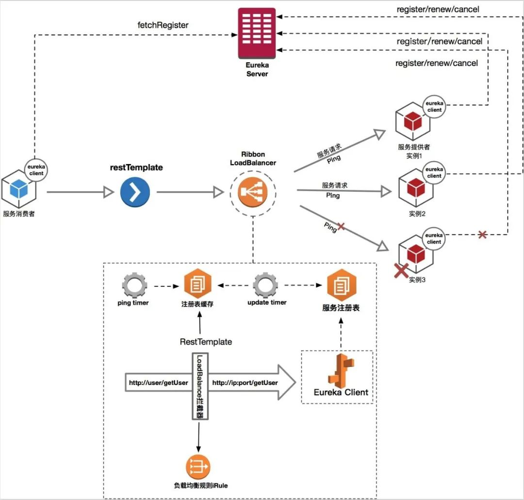 原理:主管服务注册与发现,也就是微服务的名称注册到Eureka,就可以通过Eureka找到微服务,而不需要修改服务调用的配置文件。