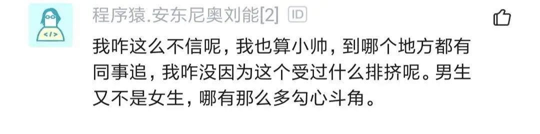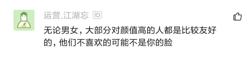 更多网友对楼主的话表示深深怀疑,觉得颜值高的人走到哪都被喜欢,楼主被排挤应该不是因为长得帅。