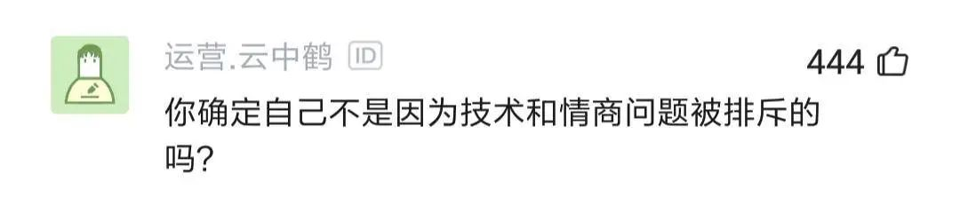 更有网友犀利地问:“你确定不是因为技术和情商问题被排斥?”