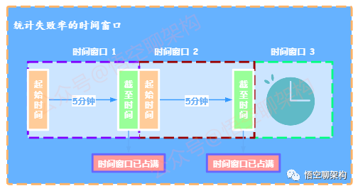 时间窗口可以比喻为人坐在窗户边,看外面来往的车辆,一定时间内从窗户外经过的车辆。每次请求,都会判断时间窗口是否已满(如5分钟),如果时间窗口已满,则重新开始计时,且清理请求数/成功数/失败数。