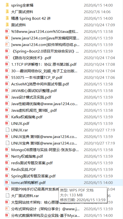 作为后端Java过来人,我是整理了很多进阶架构视频资料、面试文档以及PDF的学习资料,针对上面一套系统大纲小编也有对应的相关进阶架构视频资料,如果‘你’确定好自己未来的道路或者想学习提升自己技术栈、技术知识的小伙伴们可以关注小编帮小编转发此文后私信回复【资料】或者查看下方来获取学习资料提升自己(全套面试文档、PDF、进阶架构视频)