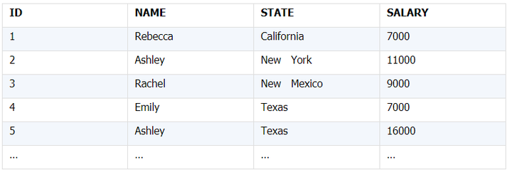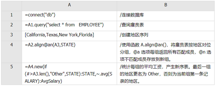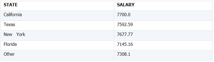 【例 3】 根据员工薪资表,统计 [California, Texas, New York, Florida] 的平均工资,未指定的州作为“Other”统计。员工薪资表部分数据如下: