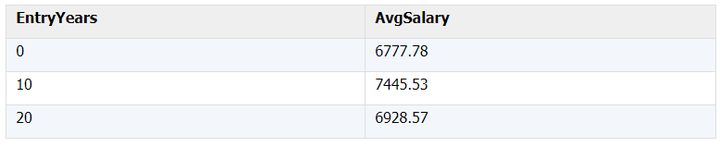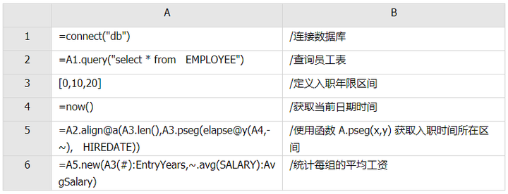 【例 8】根据员工表,按入职时间 10 年以下,10~20 年和 20 年以上分组,并统计每组的平均工资。员工表部分数据如下: