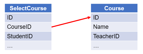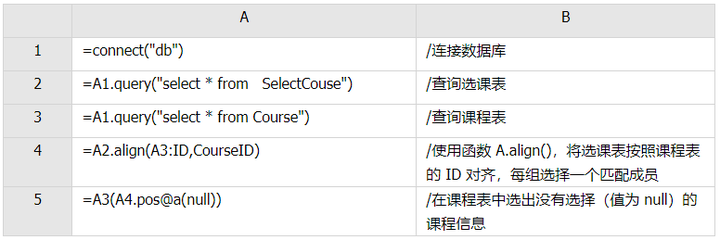 【例 1】 根据相互关联的课程表和选课表,按课程表顺序查询有哪些课程无人选择: