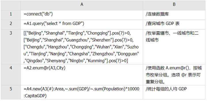 【例 11】 根据城市 GDP 表,分别统计直辖市、一线城市、二线城市的人均 GDP,分组时可能重复。城市 GDP 表部分数据如下: