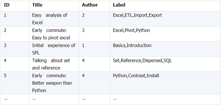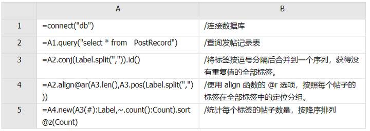 【例 6】 根据发帖记录表,按标签将帖子分组,并统计各个标签出现频数。发帖记录表部分数据如下: