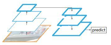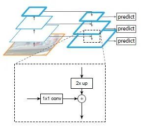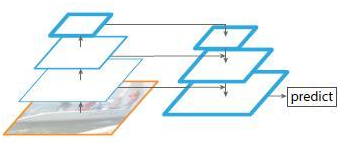 上图网络是自底向上卷积,然后使用最后一层特征图进行预测,像SPP-Net,Fast R-CNN,Faster R-CNN就是采用这种方式,即仅采用网络最后一层的特征。