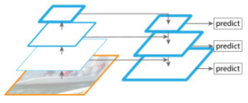 鉴于上面的单层检测会丢失细节特征;就会想到利用图像的各个尺度进行训练和测试,比如下图所展示,将图像做成不同的scale,然后不同scale的图像生成对应的不同scale的特征