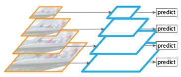 像SSD(Single Shot Detector)就是采用这种多尺度特征融合的方式,没有上采样过程,即从网络不同层抽取不同尺度的特征做预测,这种方式不会增加额外的计算量。作者认为SSD算法中没有用到足够低层的特征(在SSD中,最低层的特征是VGG网络的conv4_3),而在作者看来足够低层的特征对于检测小物体是很有帮助的。