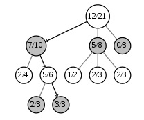 比如对于下面的棋局,对于根节点来说,有3个选择,第一个选择7胜3负,第二个选择5胜3负,第三个选择0胜3负。