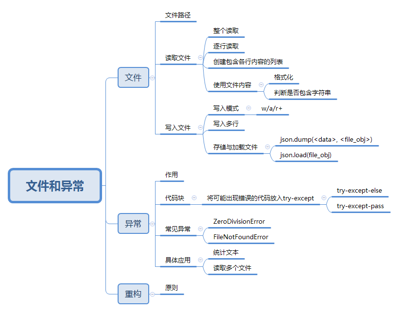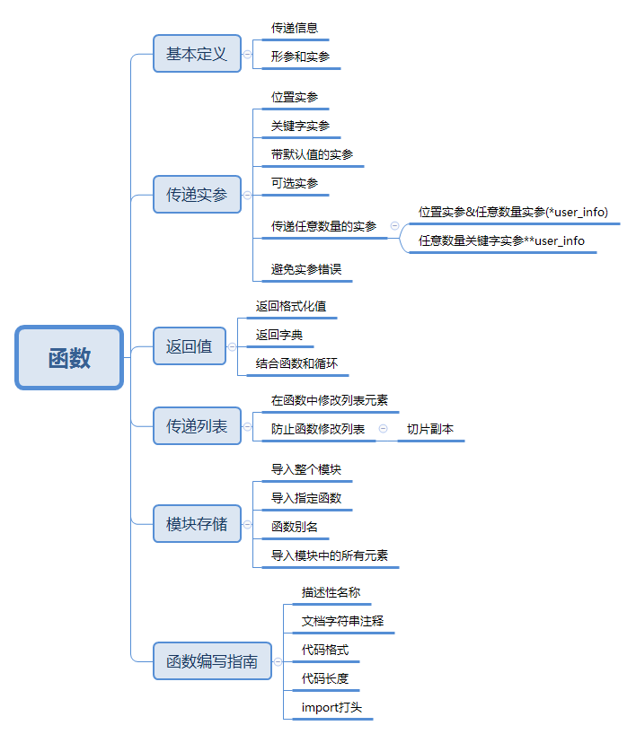 刚学习Python时,边学边总结的,采用思维导图的形式, 适合回顾使用。内容参考《Python:从入门到实践》一书。