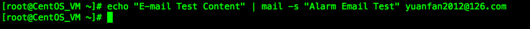 echo "E-mail Test Content" | mail -s "Alarm Email Test" yuanfan2012@126.com