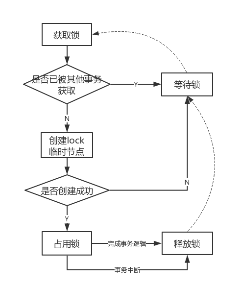 create方法创建表示锁的临时节点,可以认为创建成功的客户端获得了锁,同时可以让没有获得锁的节点在该节点上注册Watcher监听,以便实时监听到lock节点的变更情况释放锁:以下两种情况都可以让锁释放