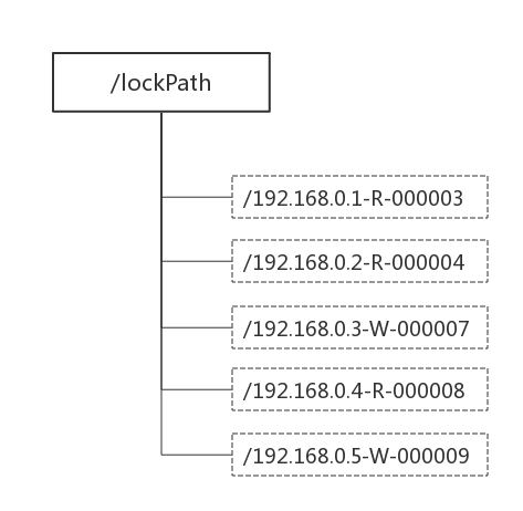 create方法创建表示锁的临时顺序节点,如果是读请求,则创建/lockpath/[hostname]-R-序号节点,如果是写请求则创建/lockpath/[hostname]-W-序号节点判断读写顺序:大概分为4个步骤