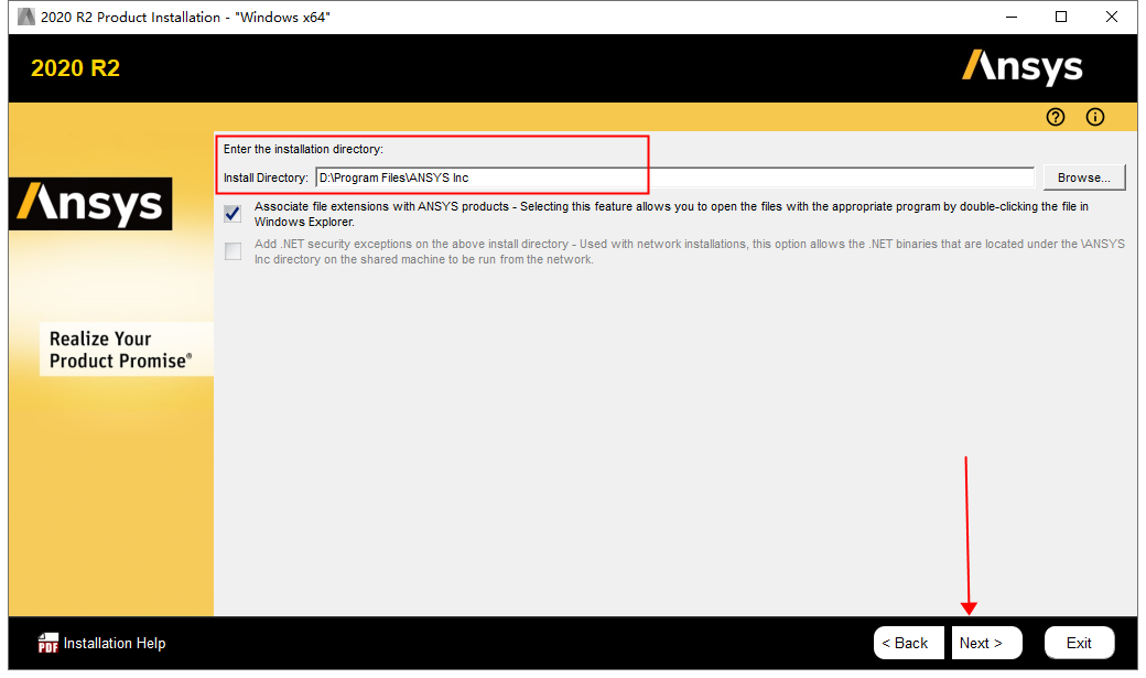 - 修改安装位置,我这里设置为D:\Program Files\ANSYS Inc