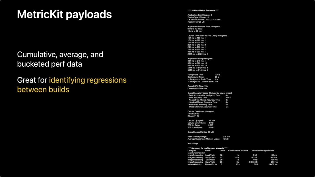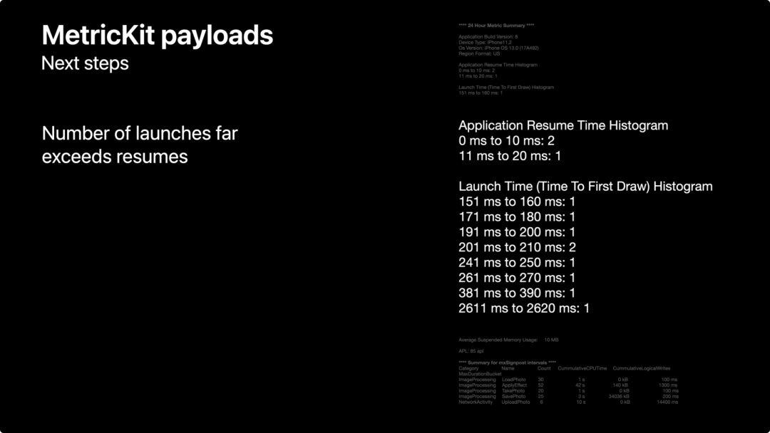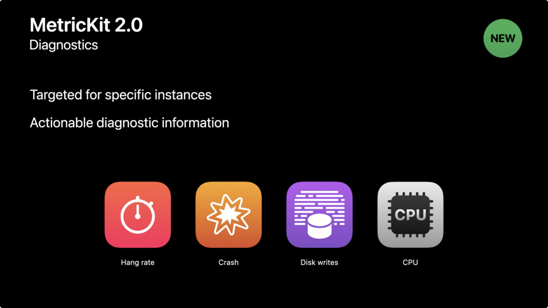不用着急,MetricKit 2.0 给了我们新的指标和 API 帮助我们深入地研究这类问题,进一步明确 App 的工作负荷、性能和稳定性。