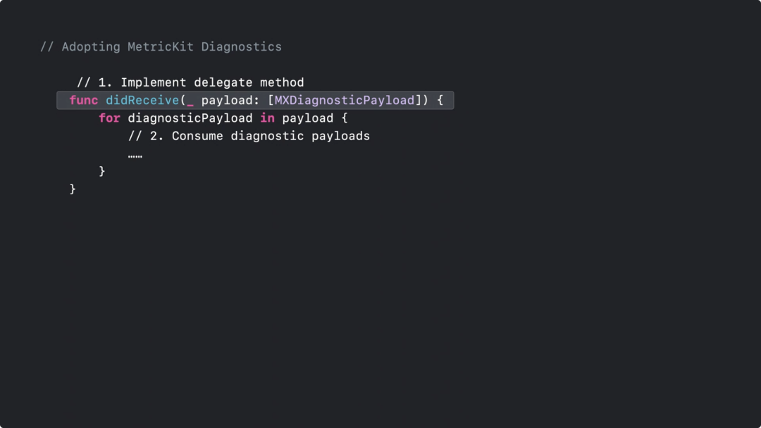 MetricKit 2.0 为我们提供了新的 delegate 回调,让我们可以方便地查看诊断信息。