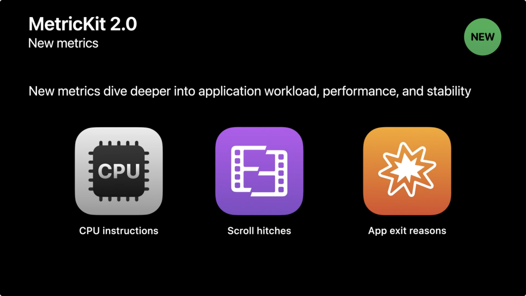 MetricKit 2.0 新增了三种指标:CPU 指令、滚动卡顿和应用程序退出。
